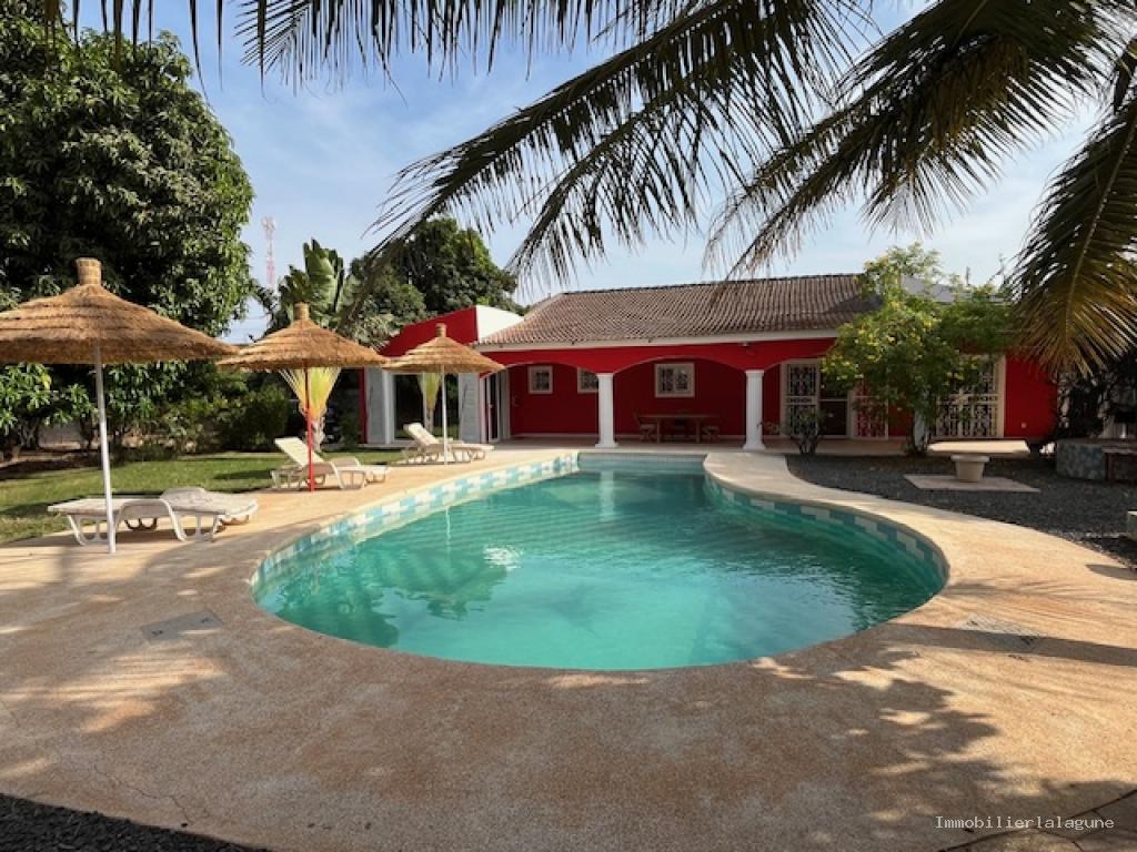 Villas à vendre à NGUERIGNE. Dans un parc magnifique de 4 850 m² de baobabs, cocotiers, arbres fruitiers et fleurs diverses, un complexe de 2 villas de style Hacienda pour un total de 8 chambres pour un bâti de 450 m² vous accueillera, implantées autour d'une piscine de plus de 100 m² et son très grand Pool house pour recevoir vos hôtes. Vous tomberez sous le charme ! 450 m² habitables sur 4850 m² de terrain.
